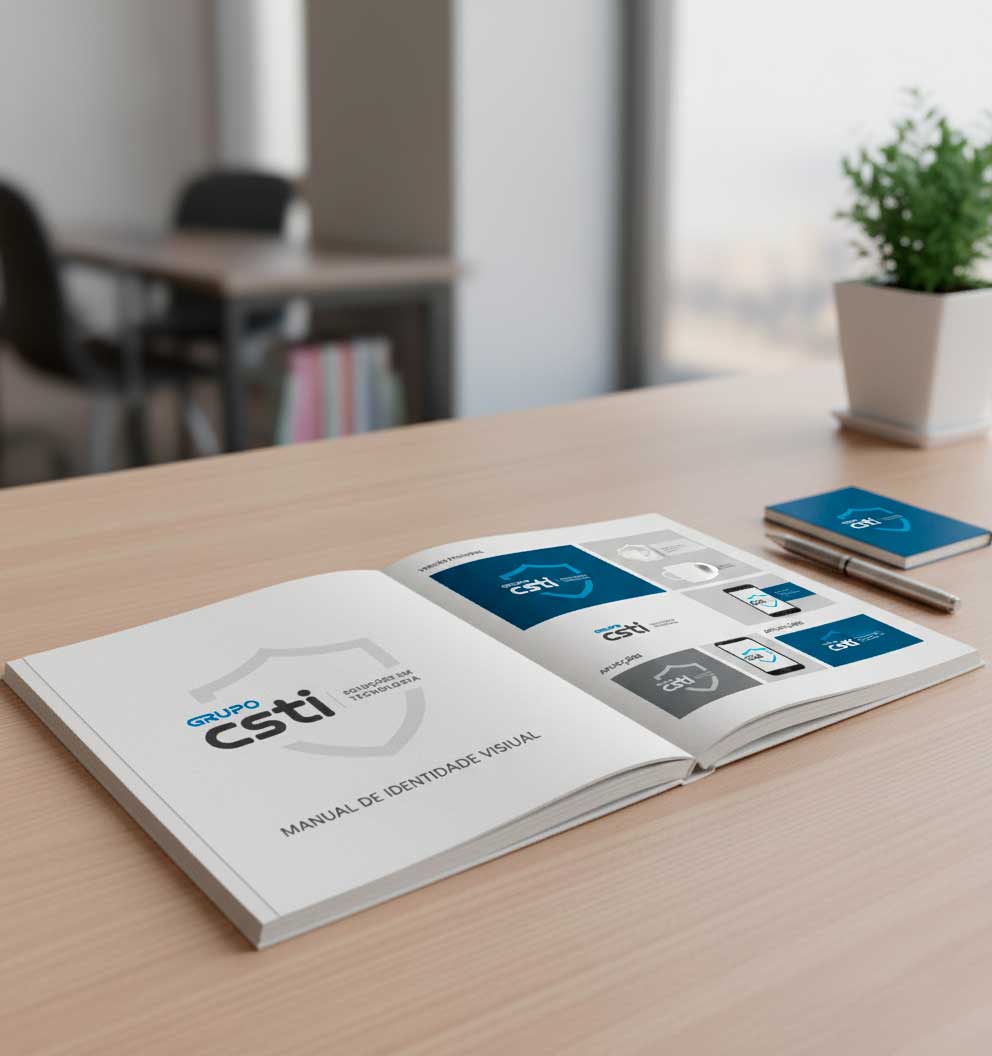 Sites modernos, materiais corporativos e peças digitais seguem a mesma linha visual, tudo alinhado com as boas práticas do mercado, coerente e preparado para qualquer aplicação.